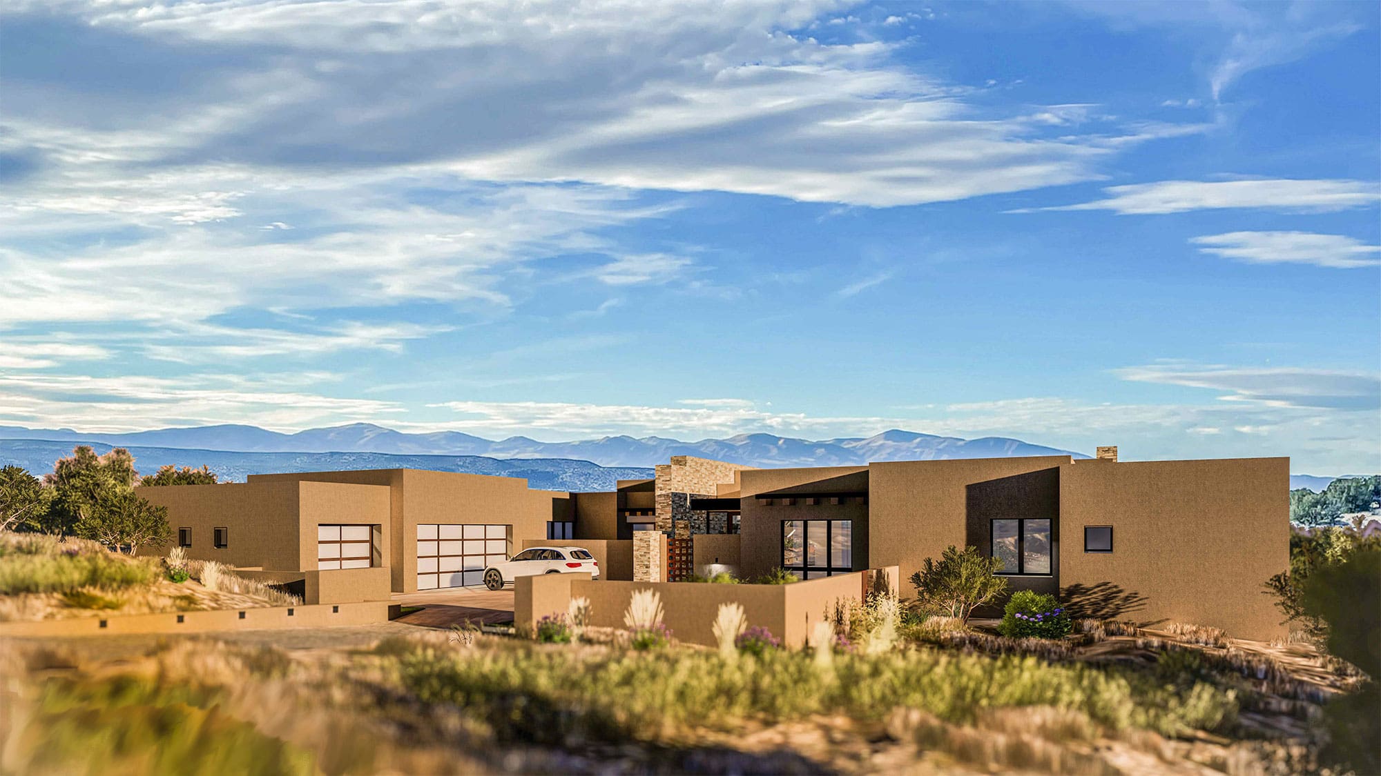 Camino Rosillo is built in the Contextual Modern style that Tierra Concepts has become known for. Seamlessly blending the best of traditional Santa Fe style with all of the modern amenities, such as disappearing sliding glass walls, indoor-outdoor rooms and a mixture of steel, stone and wood.