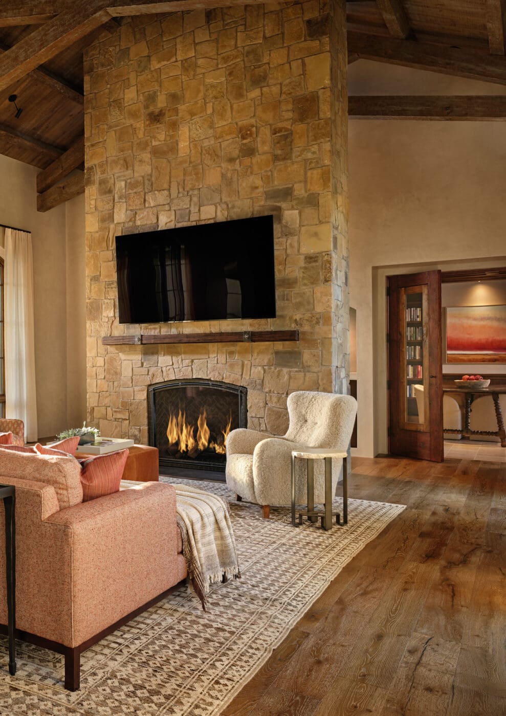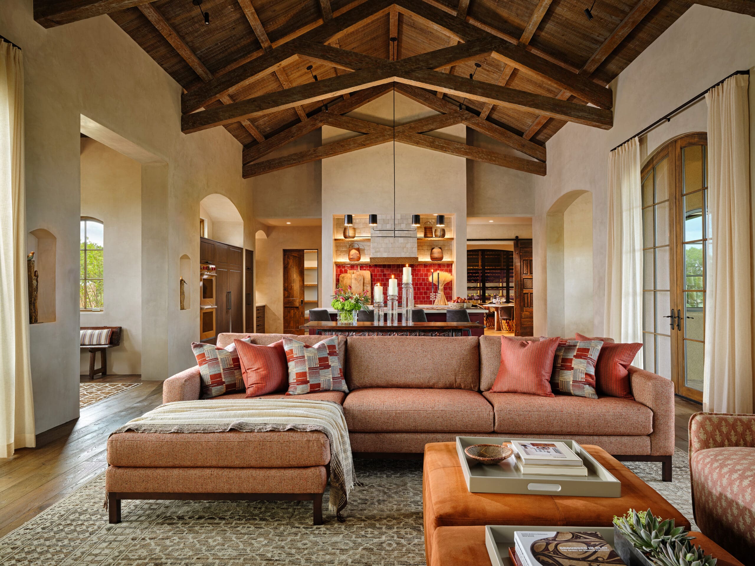 With this home, Tierra Concepts heads in an entirely new direction. A modern version of a classic Hacienda, this homes boasts 18′ 10″ ceiling heights in the beautiful great room, supported by timber scissor trusses.